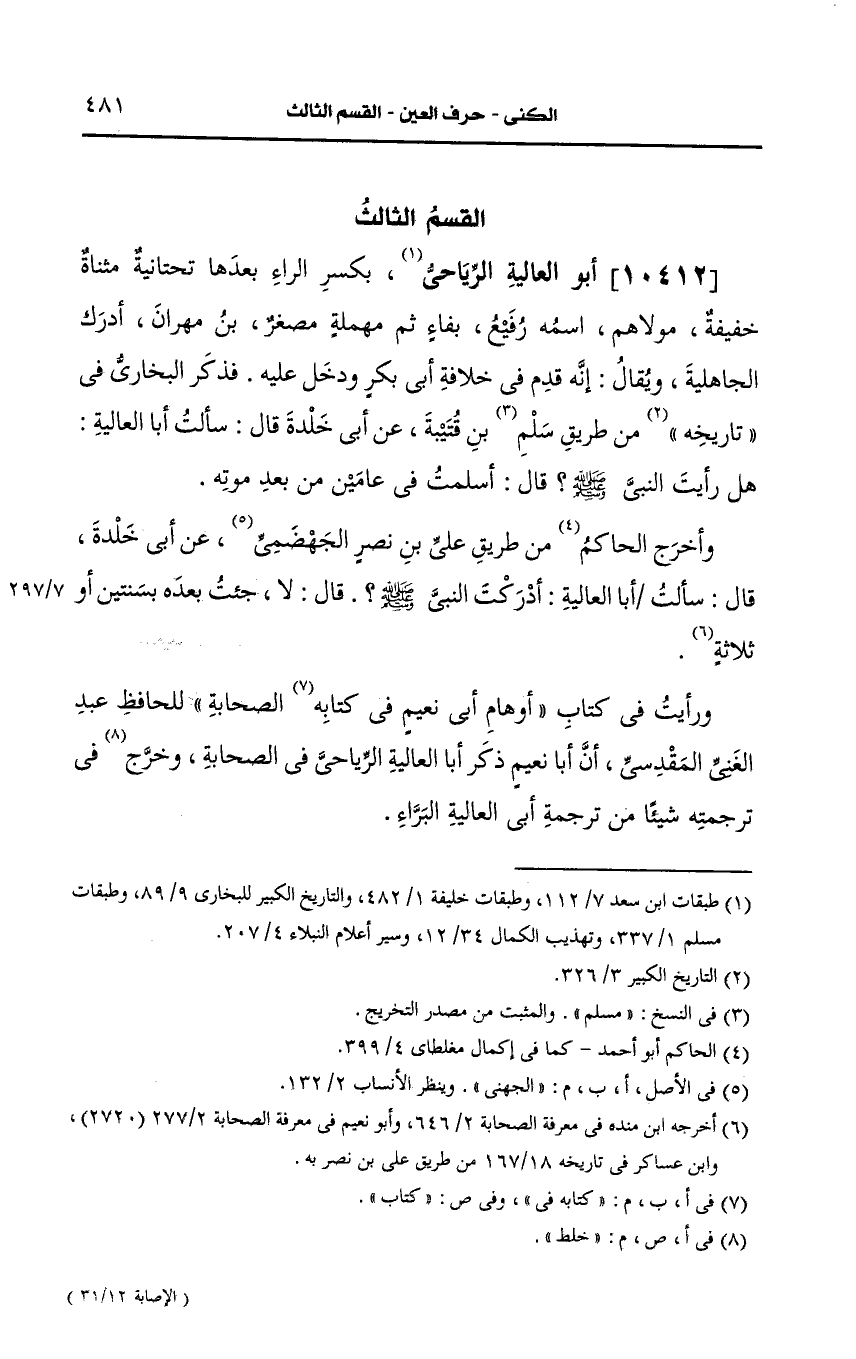 10412- أَبو العالية الرياحي بكسر الراء بعدها تحتانية مثناة خفيفة مولاهم.