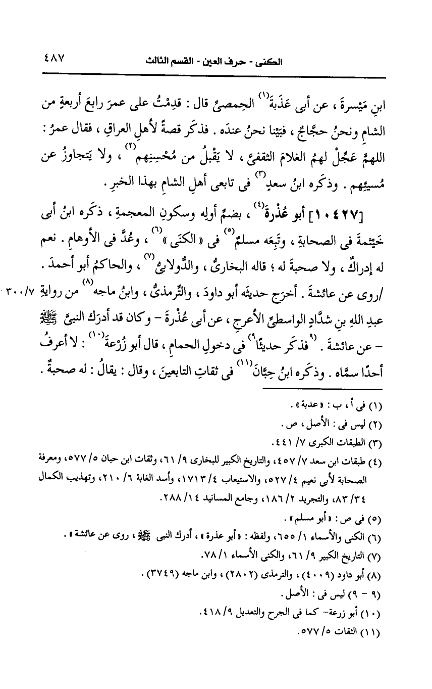 10427- أَبو عذرة بضم أوله وسكون المعجمة.