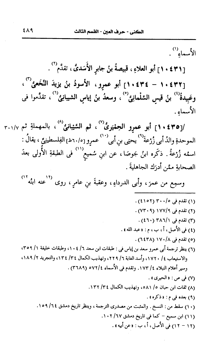 10431- أَبو العلاء قبيصة بن جابر الأسدي.