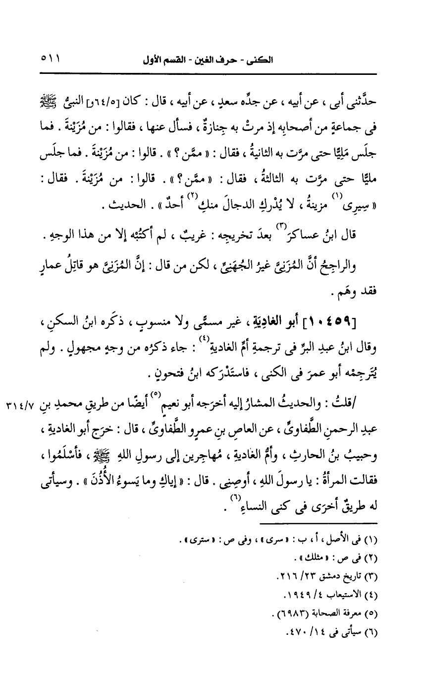 10459- أَبو الغادية غير مسمى ولا منسوب.