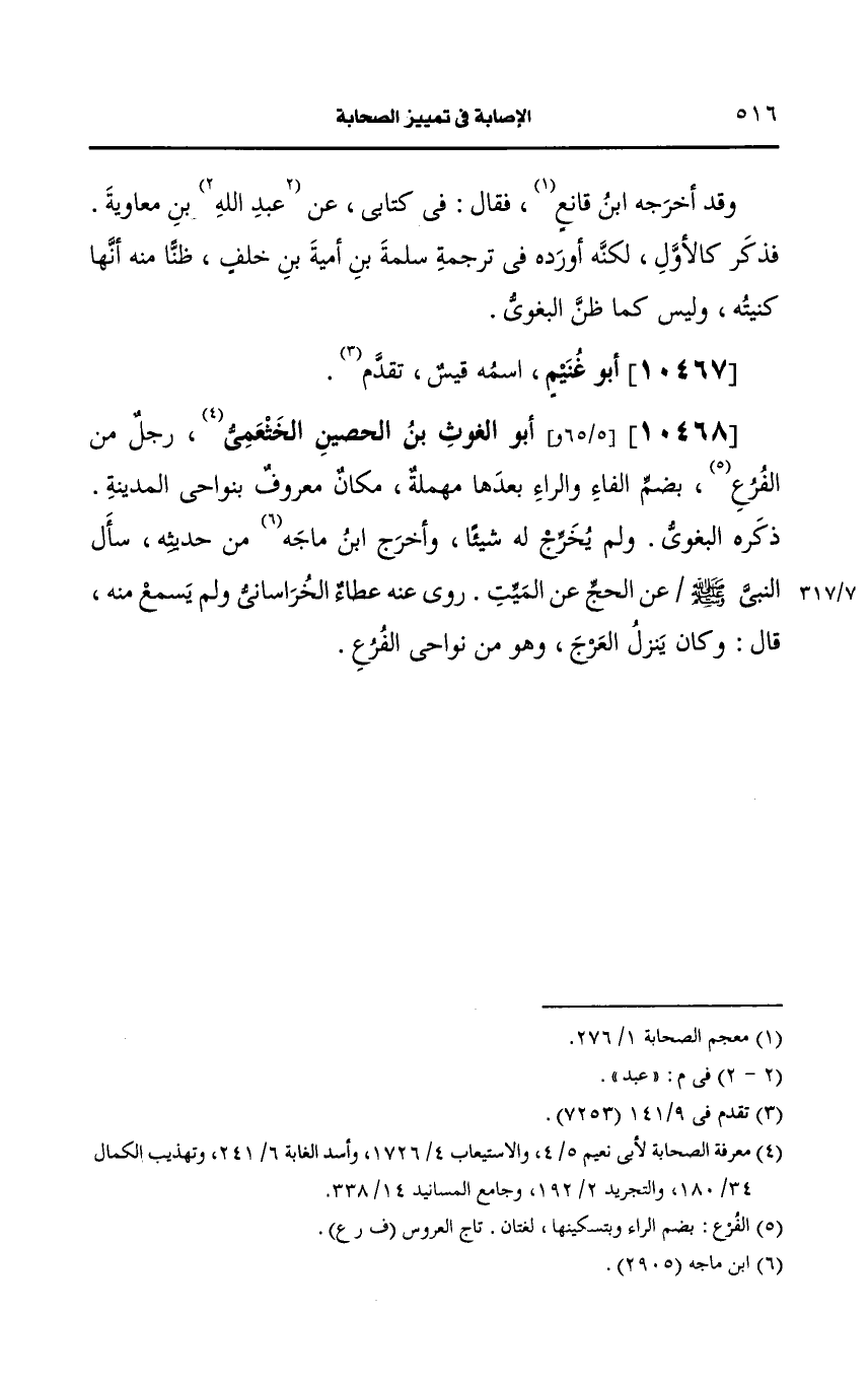10468- أَبو الغوث بن الحصين الخثعمي رجل من الفرع بضم الفاء والراء بعدها مهملة مكان معروف بنواحي المدينة.