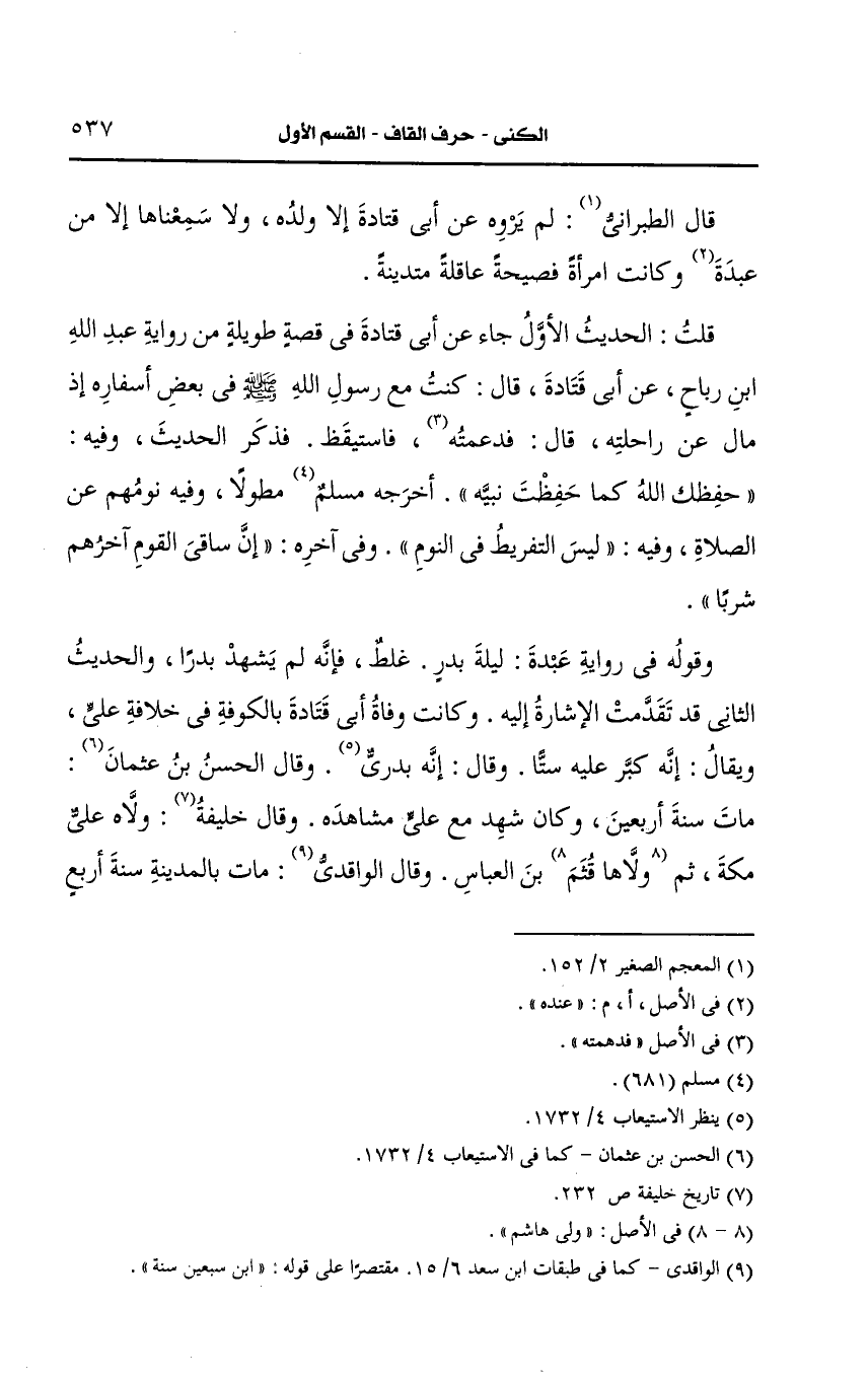 قال الطَّبَرَانِيُّ: لم يروه، عَن أبي قتادة إلا ولده ولا سمعناها إلا من عنده وكانت امرأة فصيحة عاقلة متدينة.