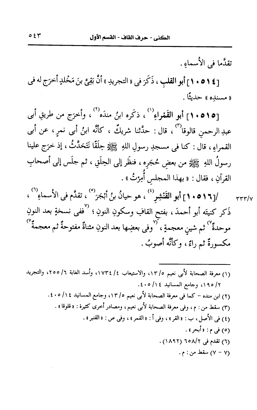 ذكر كنيته أَبو أَحمد بفتح القاف وسكون النون ثم شين معجمة مكسورة ثم راء وكأنه أصوب.