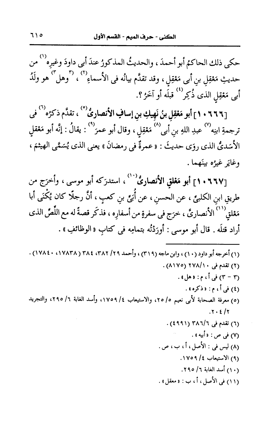 10666- أَبو معقل بن نهيك بن إساف، الأَنصارِيّ.