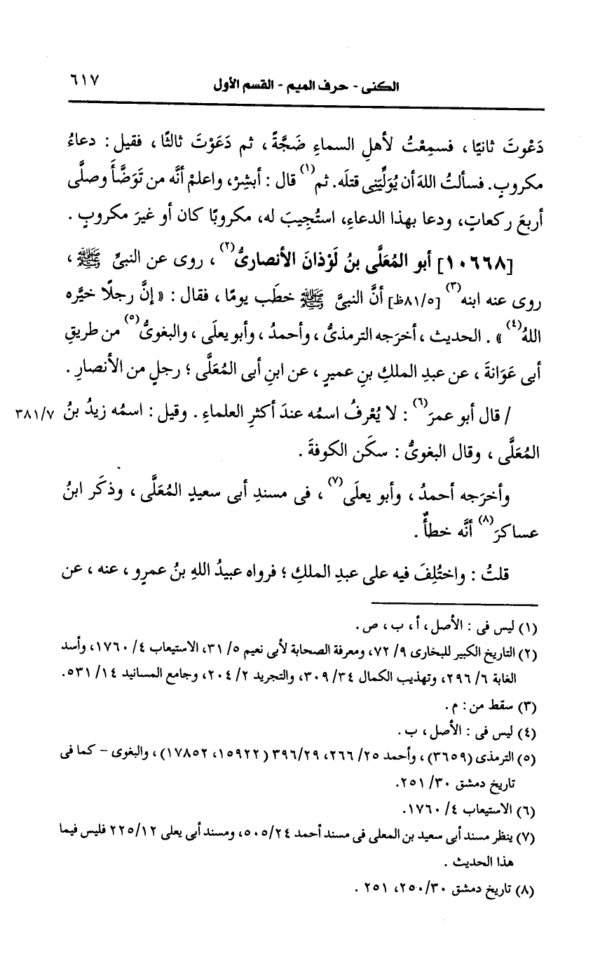 أَخرجه التِّرمِذيّ وأَحمد، وأَبو يعلى والبغوي من طريق أبي عوانة، عَن عبد الملك بن عمير، عَن ابن أبي المعلى رجل من الأنصار.