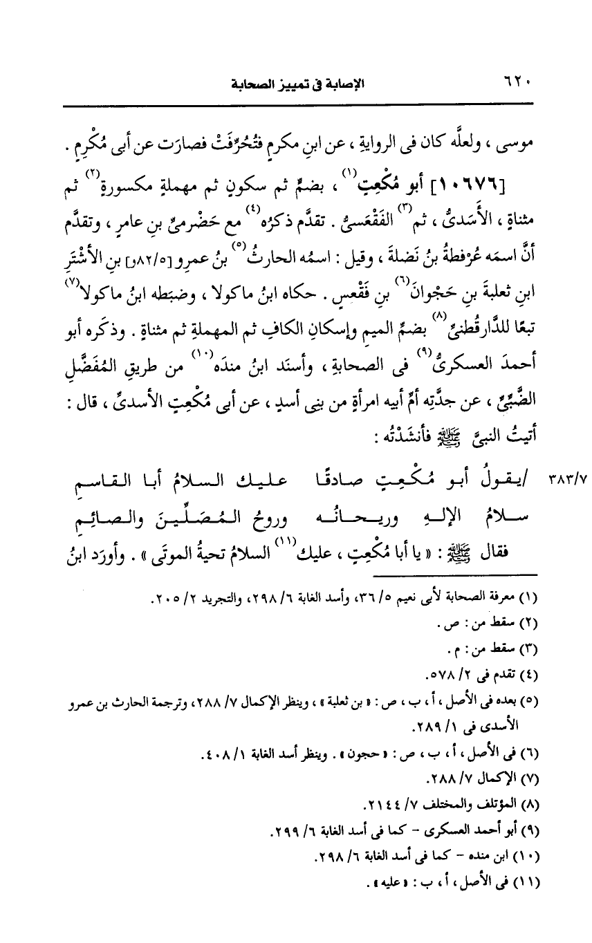 وأَخرجه أَبو نعيم من هذا الوجه فقال أَبو مصعب ثم قال صحف فيه المتأخر يعني ابن مَنْدَه فقال أَبو مكعت.