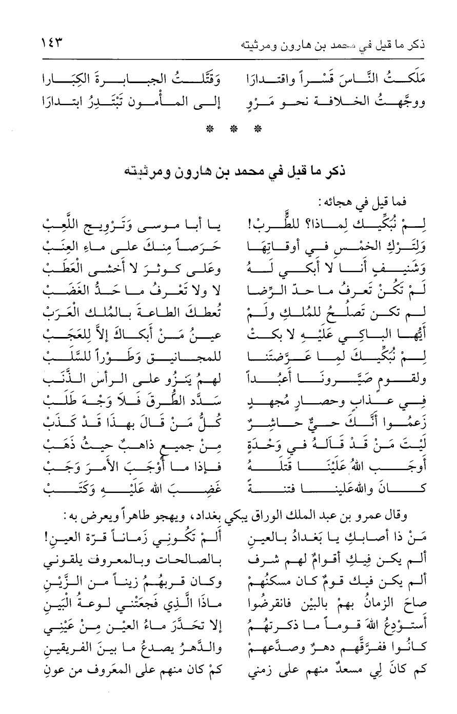 ذكر ما قيل في محمد بن هارون ومرثيته