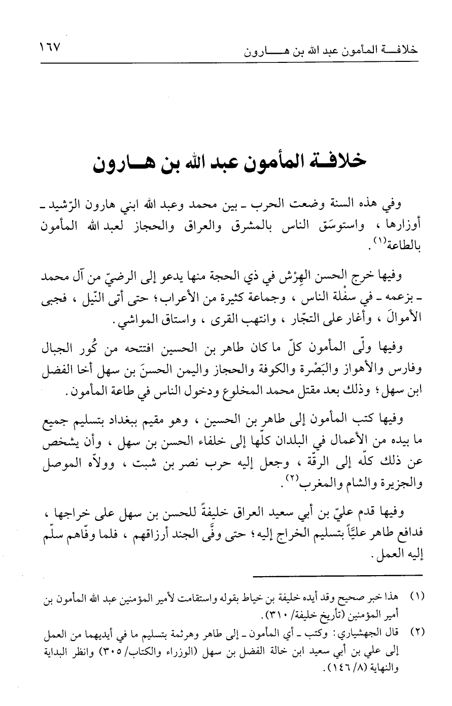 (٢) قال الجهشياري: وكتب - أي المأمون - إلى طاهر وهرثمة بتسليم ما في أيديهما من العمل إلى علي بن أبي سعيد ابن خالة الفضل بن سهل (الوزراء والكتاب/ ٣٠٥) وانظر البداية والنهاية (٨/ ١٤٦).