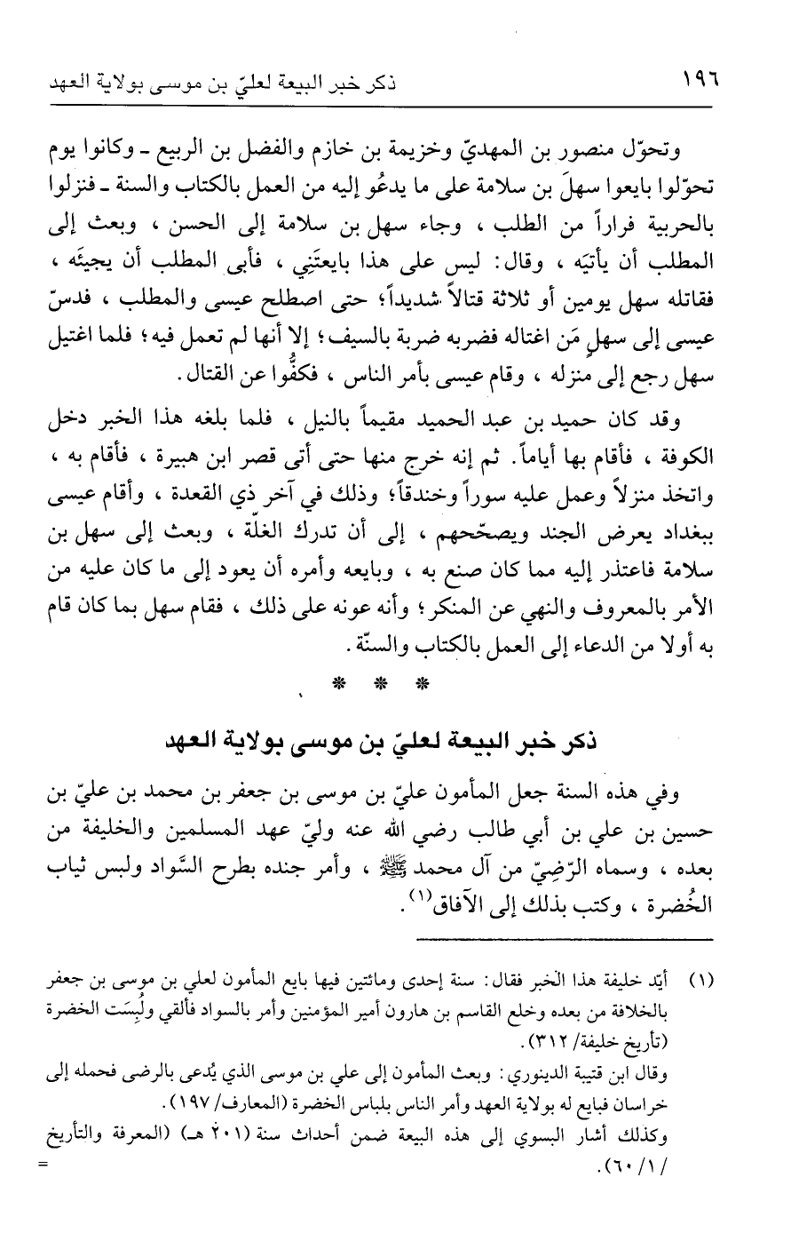وكذلك أشار البسوي إلى هذه البيعة ضمن أحداث سنة (٢٠١ هـ) (المعرفة والتأريخ/ ١/ ٦٠). =