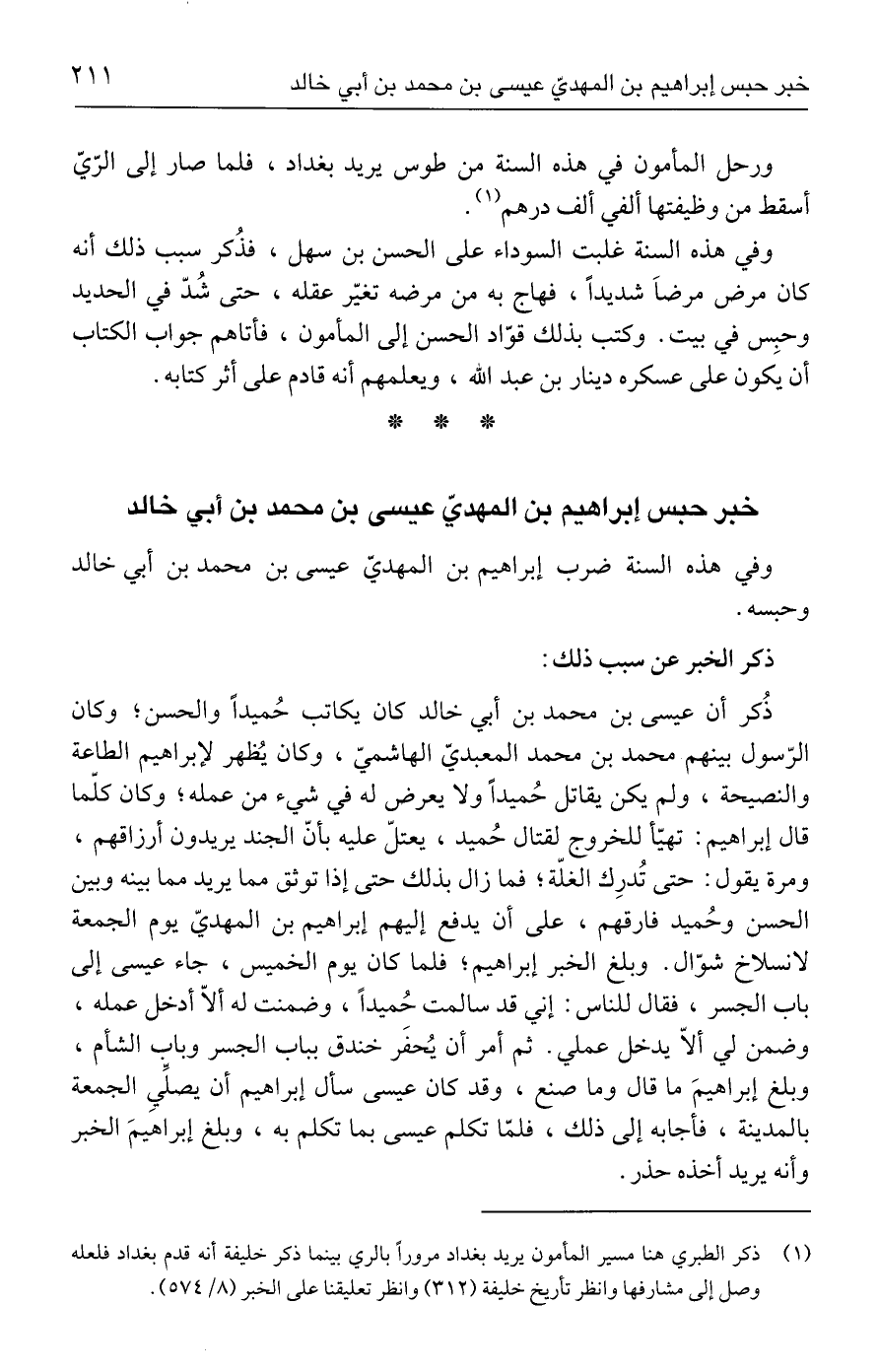وفي هذه السنة ضرب إبراهيم بن المهديّ عيسى بن محمد بن أبي خالد وحبسه.