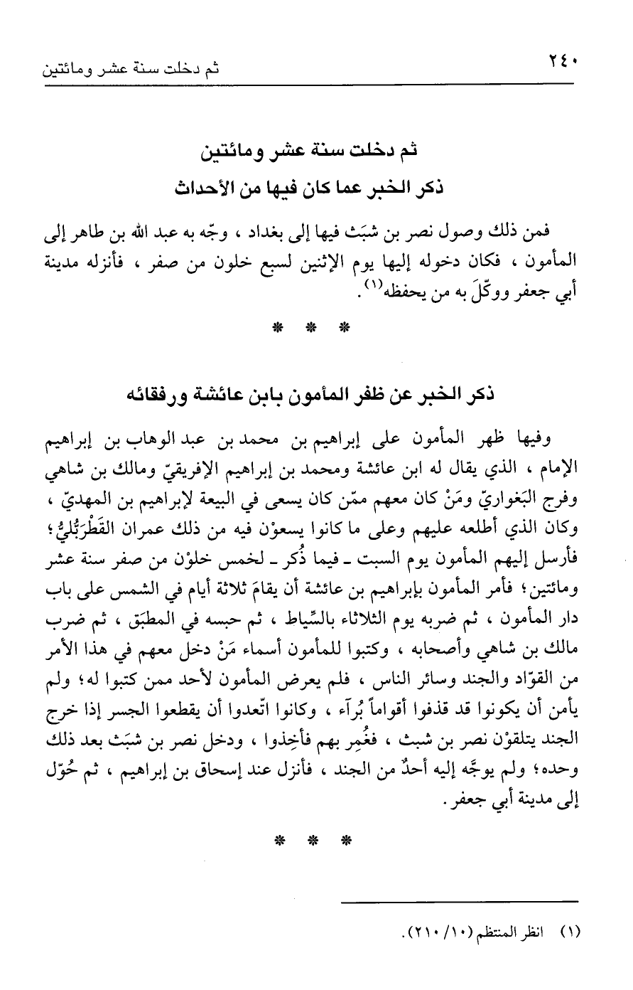 ثم دخلت سنة عشر ومائتين ذكر الخبر عما كان فيها من الأحداث