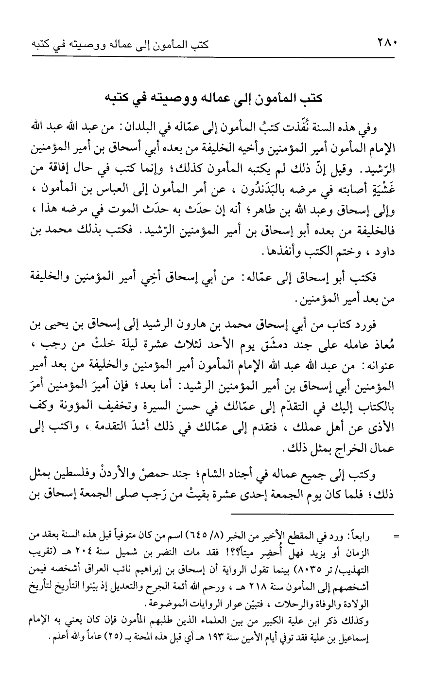 كتب المأمون إلى عماله ووصيته في كتبه