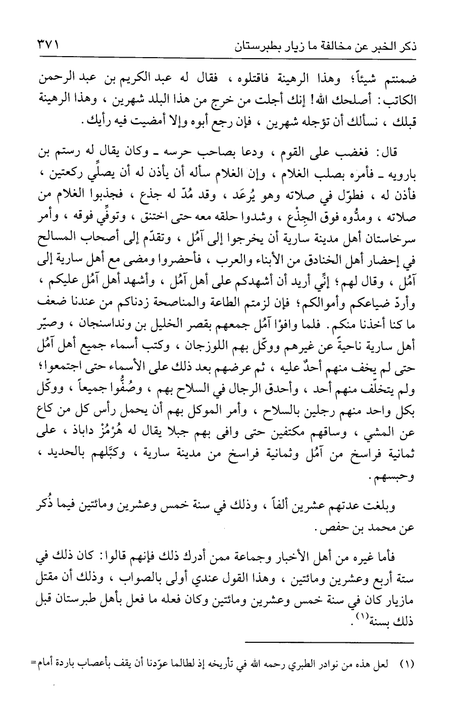 (١) لعل هذه من نوادر الطبري رحمه الله في تأريخه إذ لطالما عوّدنا أن يقف بأعصاب باردة أمام =