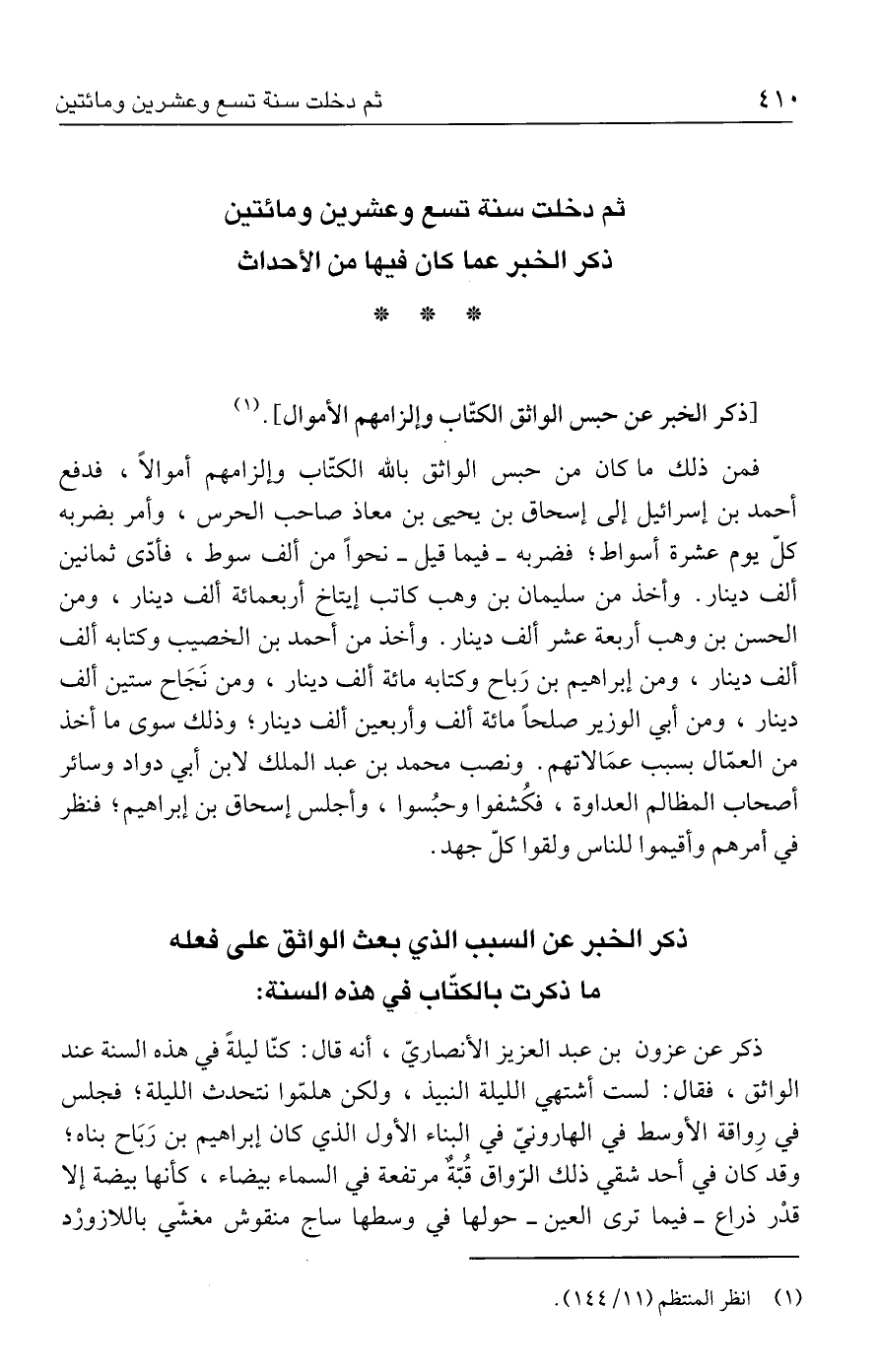 [ذكر الخبر عن حبس الواثق الكتّاب وإلزامهم الأموال]. (١)