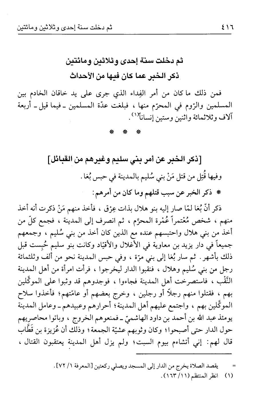 وفيها قُتِل من قتل مَنْ بني سُليم بالمدينة في حبس بُغا.