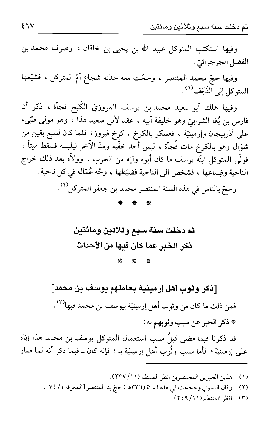 فمن ذلك ما كان من وثوب أهل إرمينيّة بيوسف بن محمد فيها (٣).