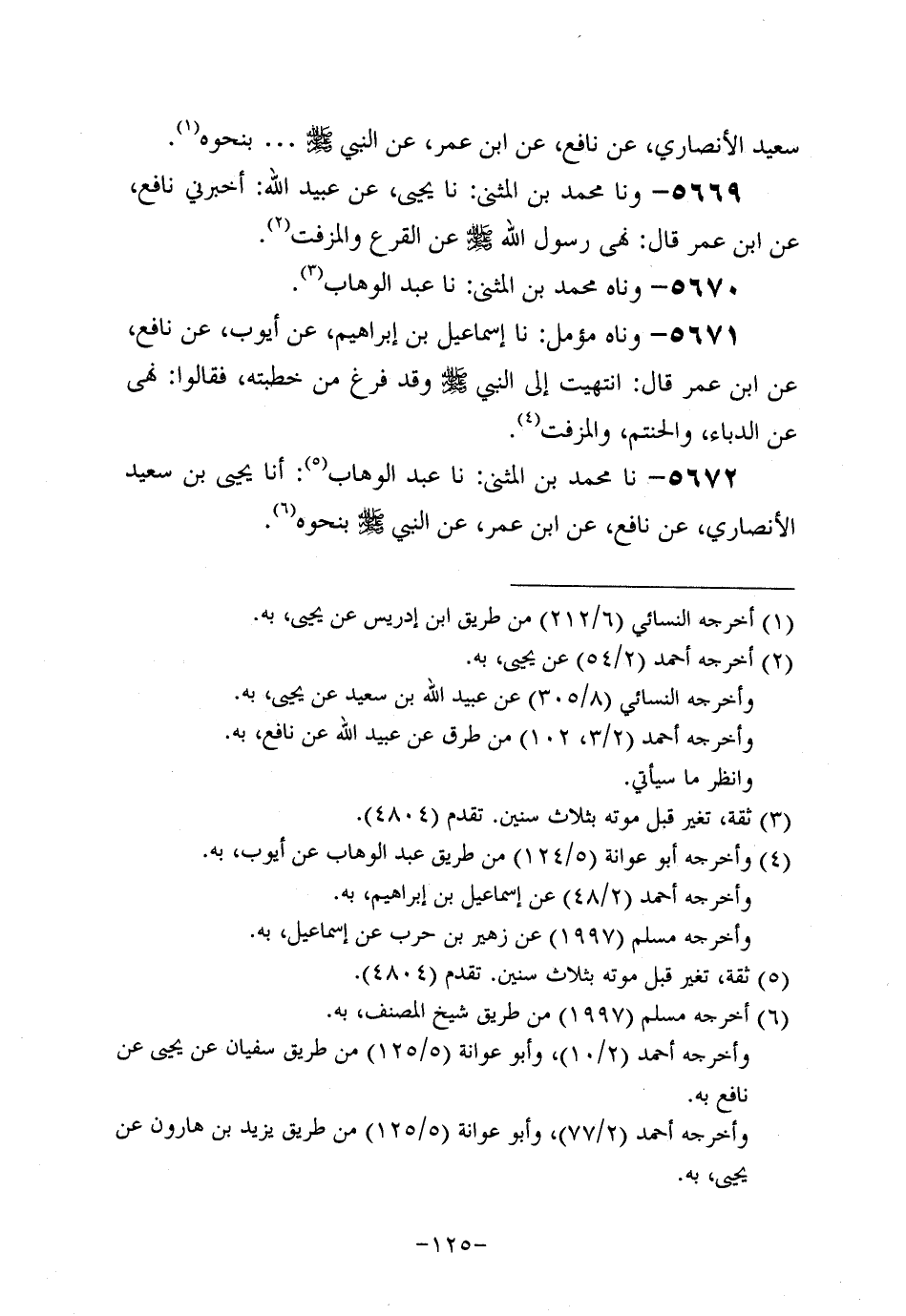 5672- حَدَّثنا مُحَمَّدُ بْنَ الْمُثَنَّى، حَدَّثنا عَبد الوَهَّاب: أَخْبَرَنَا يَحْيَى بْنُ سَعِيد الأَنْصَارِيُّ، عَن نافعٍ، عَن ابْنِ عُمَر، عَن النَّبِيّ صَلَّى اللَّهُ عَلَيه وَسَلَّم، بنحوه.