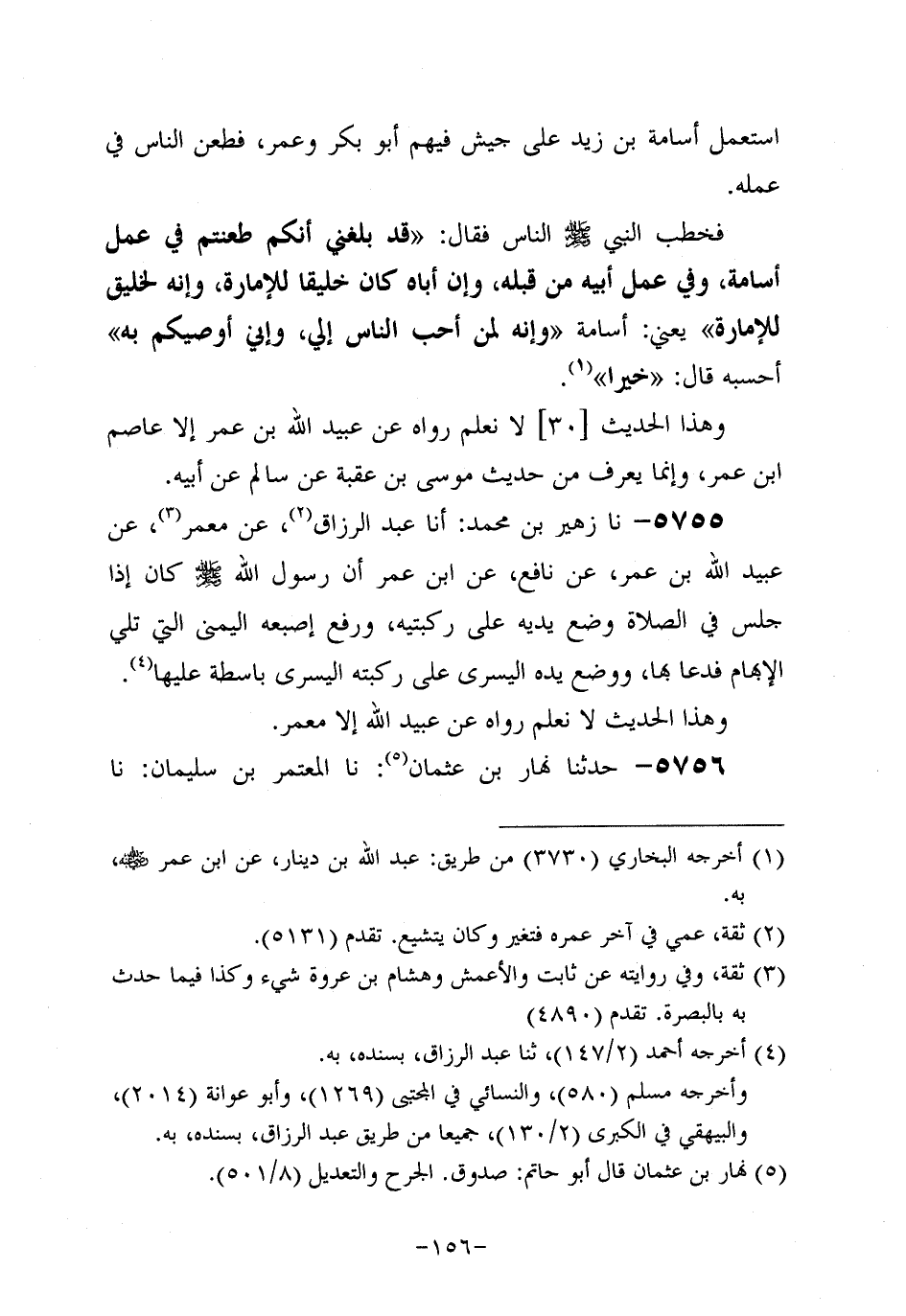 5756- حَدَّثنا نهار بن عُثمَان، حَدَّثنا المعتمر بن سليمان، حَدَّثنا عُبَيد اللَّهِ بْنِ عُمَر، عَن نافعٍ، عَن ابْنِ عُمَر؛ أَن النَّبِيّ صَلَّى اللَّهُ عَلَيه وَسَلَّم قَالَ: خَيْرُ أَسْمَائِكُمْ: عَبْدُ اللهِ , وَعَبْدُ الرَّحْمَنِ.