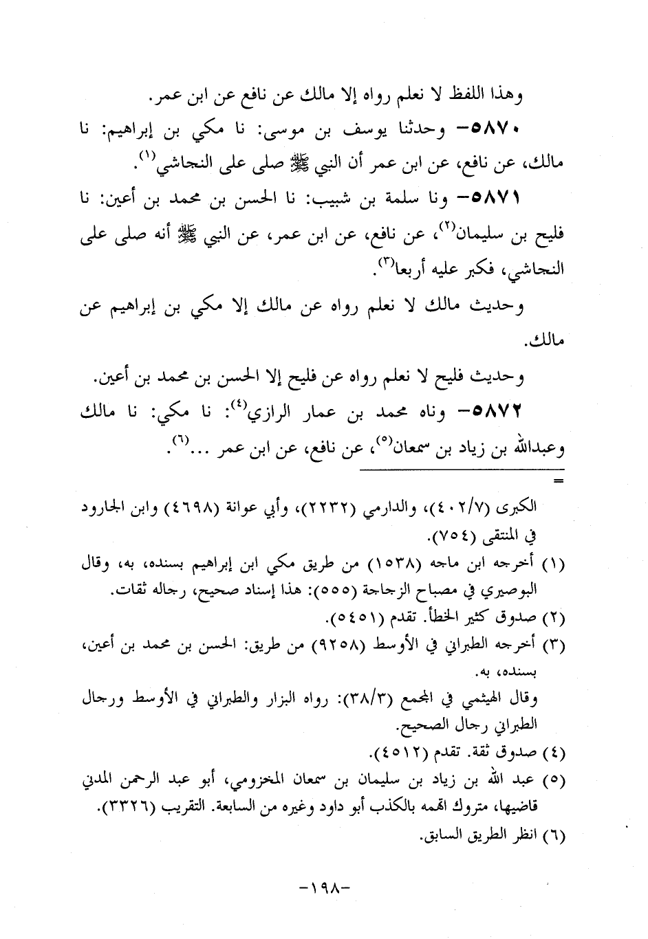 5872- وحَدَّثناه مُحَمد بن عمار الرازي، حَدَّثنا مكي، حَدَّثنا مَالِكٌ، وعَبد اللهِ بْنُ زِيَادِ بْنِ سَمْعَانَ، عَن نافعٍ، عَن ابْنِ عُمَرَ.