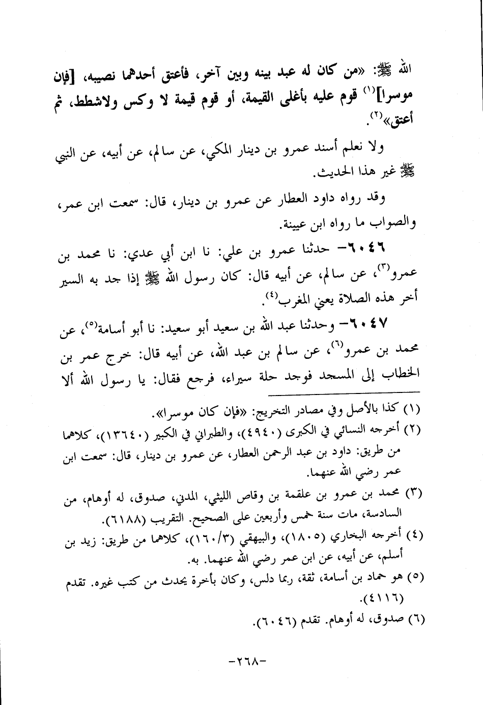6046- حَدَّثَنا عَمْرُو بْنُ عَلِيٍّ، حَدَّثنا ابن أبي عَدِيّ، حَدَّثنا مُحَمد بْنُ عَمْرو، عَنْ سَالِمٍ، عَنْ أَبِيهِ، قَال: كَانَ رَسُولُ اللَّهِ صَلَّى اللَّهُ عَلَيه وَسَلَّم إِذَا جَدَّ بِهِ السَّيْرُ أَخَّرَ هَذِهِ الصَّلاةَ يَعْنِي الْمَغْرِبَ.