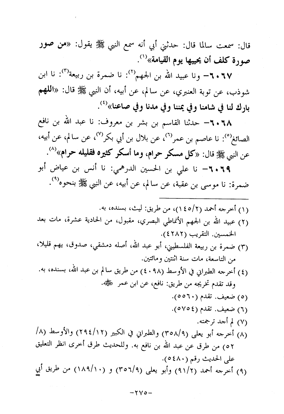 6068- حَدَّثنا القاسم بن بِشْر بن معروف، حَدَّثنا عَبد الله بن نافع الصائغ، حَدَّثنا عَاصِم بْنُ عُمَر، عَن بِلالِ بْنِ أَبِي بَكْرٍ، عَنْ سَالِمٍ، عَنْ أَبِيهِ، عَن النَّبِيّ صَلَّى اللَّهُ عَلَيه وَسَلَّم قَالَ: كُلُّ مُسْكِرٍ حَرَامٌ وما أسكر كثيره فقليله حرام.