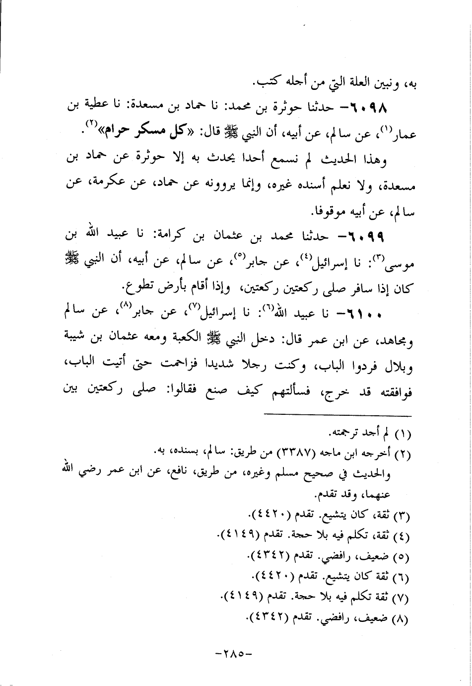 6098- حَدَّثنا حوثرة بن مُحَمد، حَدَّثنا حماد بن مسعدة، حَدَّثنا عَطِيَّةُ بْنُ عَمَّارٍ، عَنْ سَالِمٍ، عَنْ أَبِيهِ، أَنَّ النَّبِيّ صَلَّى اللَّهُ عَلَيه وَسَلَّم قَالَ: كُلُّ مُسْكِرٍ حَرَامٌ.