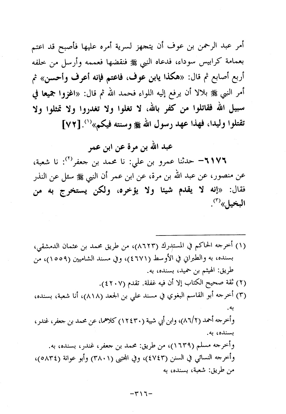 6176- حَدَّثَنا عَمْرُو بْنُ عَلِيٍّ، حَدَّثنا مُحَمَّدُ بْنَ جَعْفَرٍ، حَدَّثنا شُعْبَةُ، عَن مَنْصُورٍ، عَن عَبد اللَّهِ بْنِ مُرَّةَ، عَن ابْنِ عُمَر؛ أَن النَّبِيّ صَلَّى اللَّهُ عَلَيه وَسَلَّم سُئل عَن النَّذْرِ فَقَالَ: إِنَّهُ لا يُقَدِّمُ شَيْئًا، ولاَ يُؤَخِّرُهُ، وَلكن يُسْتَخْرَجُ بِهِ مِنَ الْبَخِيلِ.
