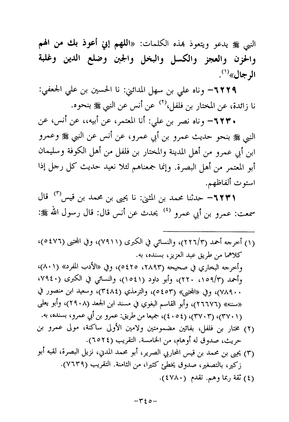 6230- وحَدَّثناه نصر بن علي: أَخْبَرَنَا الْمُعْتَمِرُ، عَن أَبِيه، عَن أَنَسٍ، عَن النَّبِيّ صَلَّى اللَّهُ عَلَيه وَسَلَّم بِنَحْوِ حَدِيثِ عَمْرو بْنِ أَبِي عَمْرو، عَن أَنَسٍ، عَن النَّبِيّ صَلَّى اللَّهُ عَلَيه وَسَلَّم وَعَمْرُو بْنُ أَبِي عَمْرو مِنْ أَهْلِ الْمَدِينَةِ وَالْمُخْتَارُ بْنُ فُلْفُلٍ مِنْ أَهْلِ الْكُوفَةِ وَسُلَيْمَانُ أَبُو الْمُعْتَمِرِ مِنْ أَهْلِ الْبَصْرَةِ، وَإنَّما جَمَعْنَاهُمْ لِئَلا نُعِيدَ حَدِيثَ كُلِّ رَجُلٍ إِذَا اسْتَوَتْ أَلْفَاظُهُمْ.