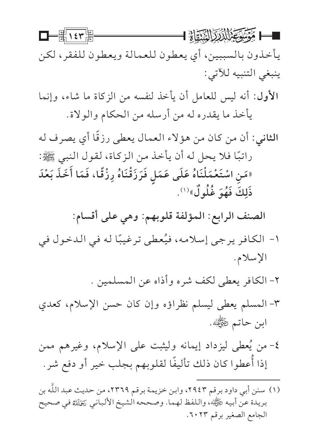 الصنف الرابع: المؤلفة قلوبهم: وهي على أقسام: