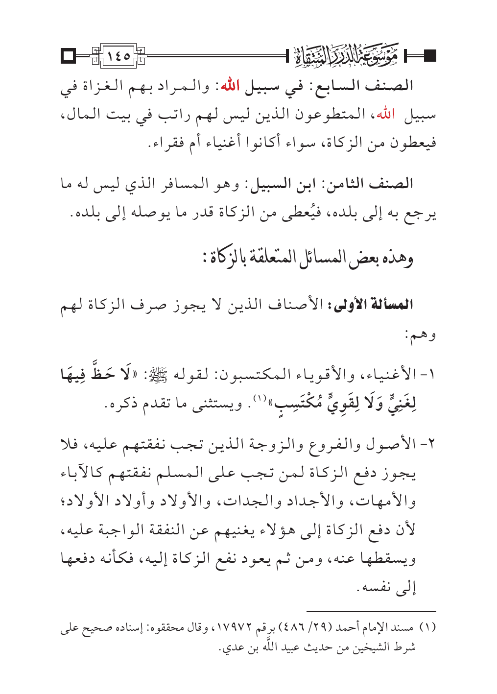 المسألة الأولى: الأصناف الذين لا يجوز صرف الزكاة لهم وهم: