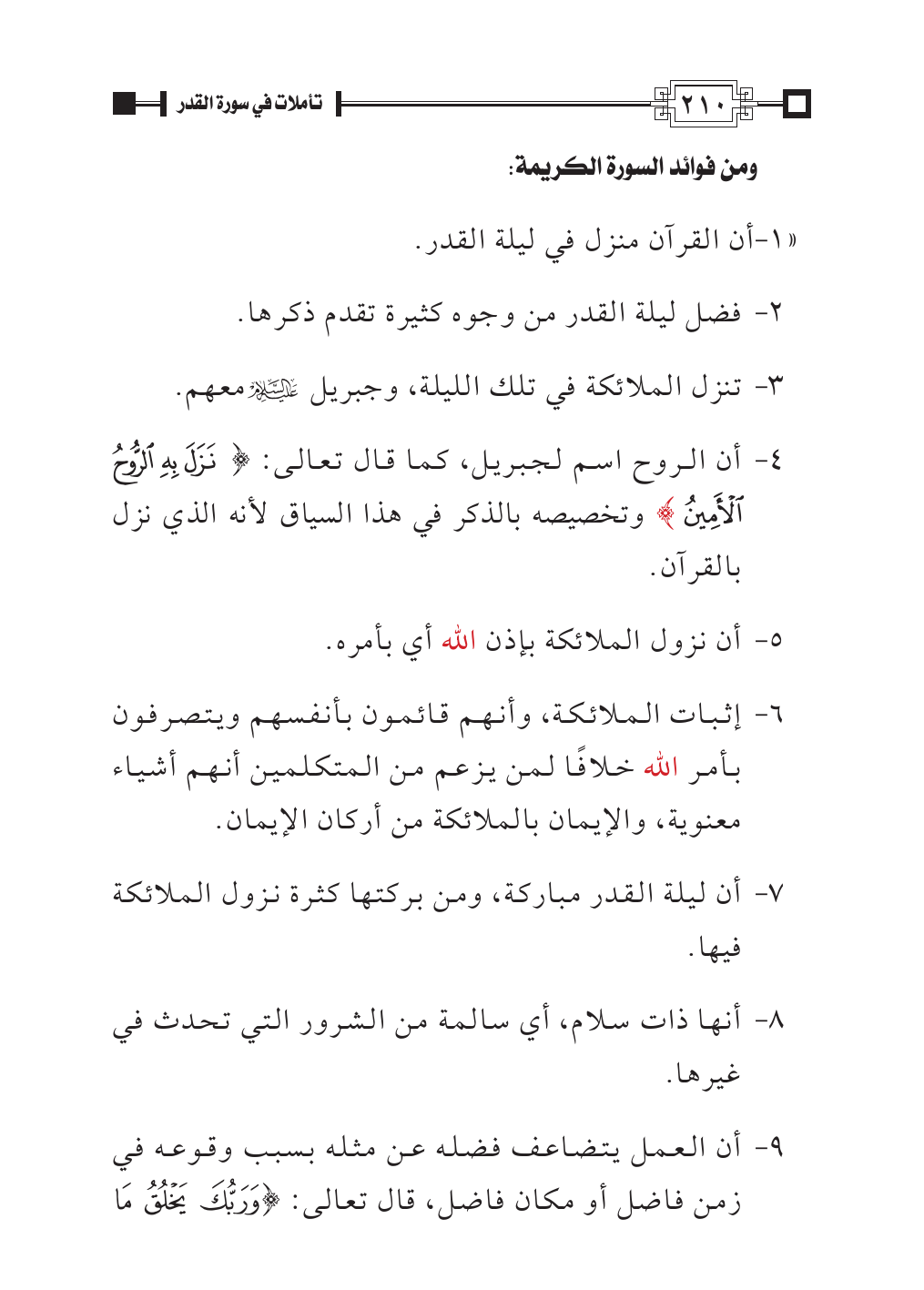 ٧ - أن ليلة القدر مباركة، ومن بركتها كثرة نزول الملائكة فيها.