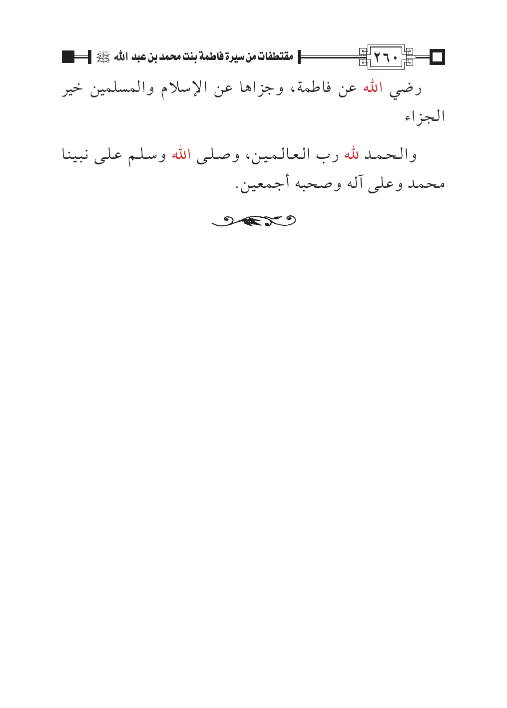 رضي الله عن فاطمة، وجزاها عن الإسلام والمسلمين خير الجزاء