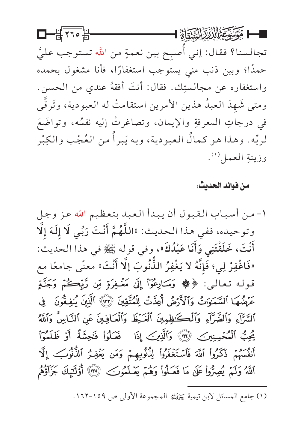 (¬١). جامع المسائل لابن تيمية - رحمه الله - المجموعة الأولى ص ١٥٩ - ١٦٢.