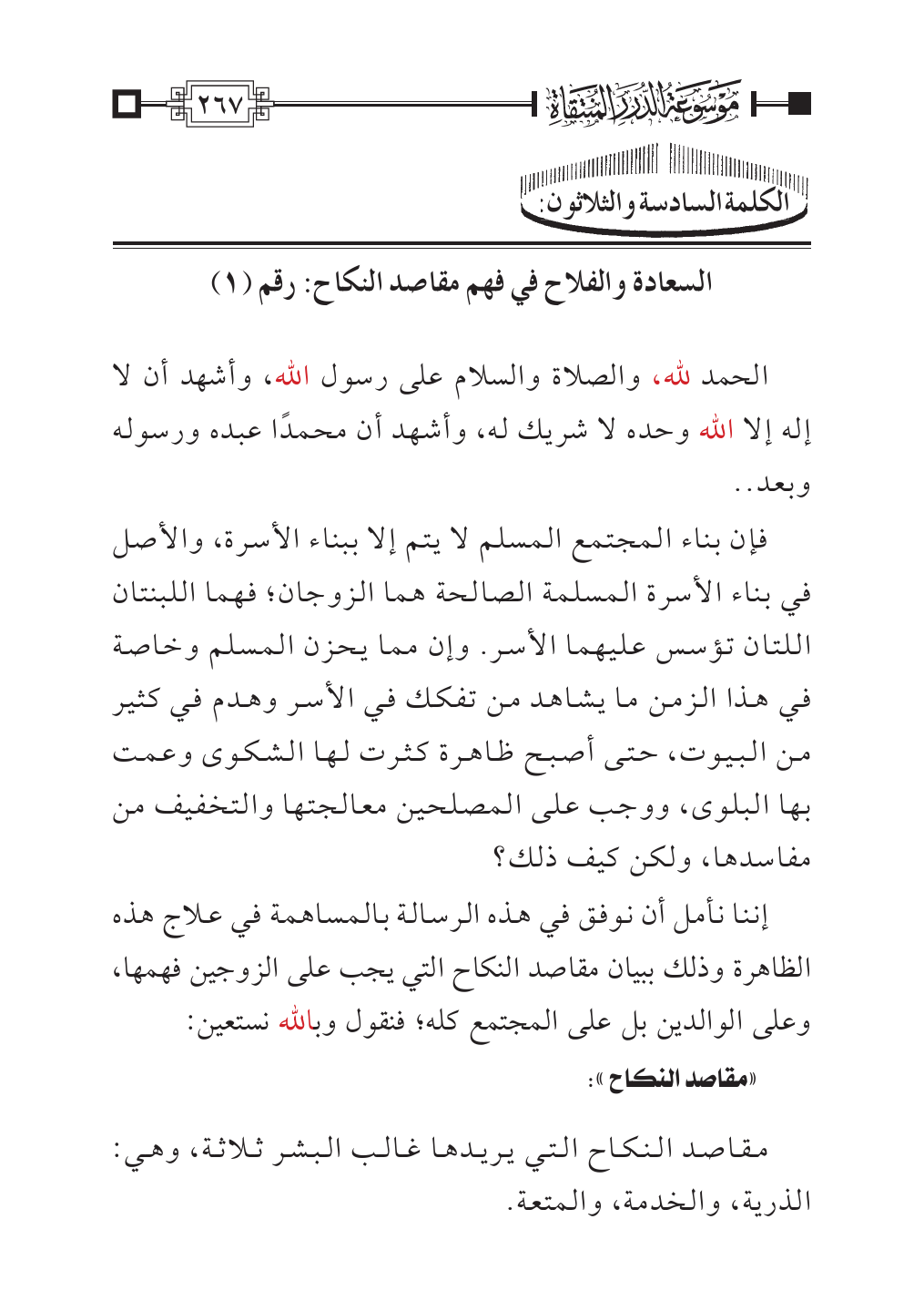 السعادة والفلاح في فهم مقاصد النكاح: رقم (١)