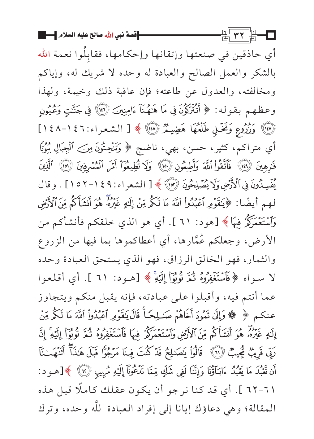 أي حاذقين في صنعتها وإتقانها وإحكامها، فقابِلُوا نعمة الله بالشكر والعمل الصالح والعبادة له وحده لا شريك له، وإياكم ومخالفته، والعدول عن طاعته؛ فإن عاقبة ذلك وخيمة، ولهذا وعظهم بقوله: {أَتُتْرَكُونَ فِي مَا هَاهُنَا آمِنِينَ (١٤٦) فِي جَنَّاتٍ وَعُيُونٍ (١٤٧) وَزُرُوعٍ وَنَخْلٍ طَلْعُهَا هَضِيمٌ (١٤٨)} [الشعراء:١٤٦ - ١٤٨] أي متراكم، كثير، حسن، بهي، ناضج {وَتَنْحِتُونَ مِنَ الْجِبَالِ بُيُوتًا فَارِهِينَ (١٤٩) فَاتَّقُوا اللَّهَ وَأَطِيعُونِ (١٥٠) وَلَا تُطِيعُوا أَمْرَ الْمُسْرِفِينَ (١٥١) الَّذِينَ يُفْسِدُونَ فِي الْأَرْضِ وَلَا يُصْلِحُونَ (١٥٢)} [الشعراء:١٤٩ - ١٥٢]. وقال لهم أيضًا: {يَاقَوْمِ اعْبُدُوا اللَّهَ مَا لَكُمْ مِنْ إِلَهٍ غَيْرُهُ هُوَ أَنْشَأَكُمْ مِنَ الْأَرْضِ وَاسْتَعْمَرَكُمْ فِيهَا} [هود: ٦١]. أي هو الذي خلقكم فأنشأكم من الأرض، وجعلكم عُمَّارها، أي أعطاكموها بما فيها من الزروع والثمار، فهو الخالق الرزاق، فهو الذي يستحق العبادة وحده لا سواه {فَاسْتَغْفِرُوهُ ثُمَّ تُوبُوا إِلَيْهِ} [هود: ٦١].