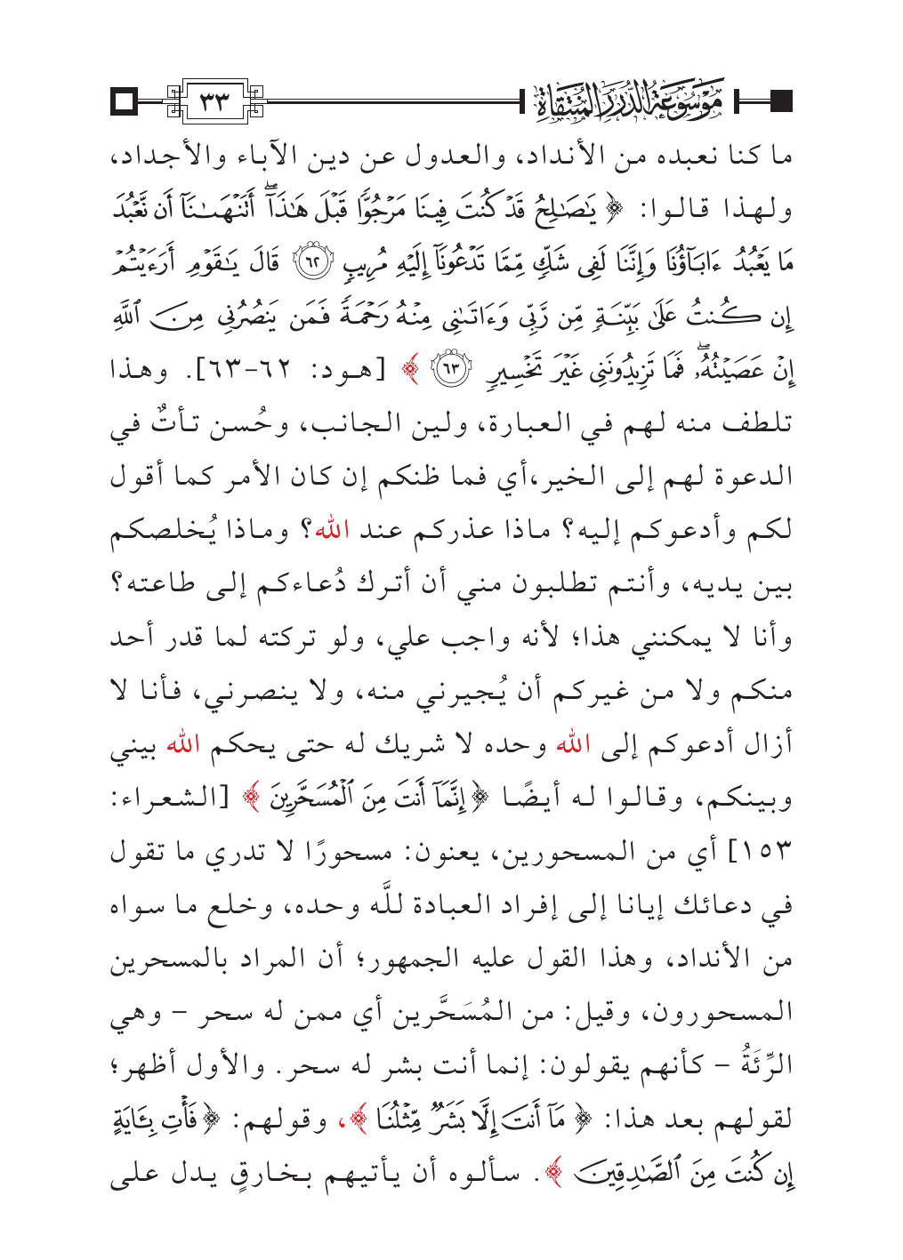 وهذا تلطف منه لهم في العبارة، ولين الجانب، وحُسن تأتٌ في الدعوة لهم إلى الخير، أي فما ظنكم إن كان الأمر كما أقول لكم وأدعوكم إليه؟ ماذا عذركم عند الله؟ وماذا يُخلصكم بين يديه، وأنتم تطلبون مني أن أترك دُعاءكم إلى طاعته؟ وأنا لا يمكنني هذا؛ لأنه واجب علي، ولو تركته لما قدر أحد منكم ولا من غيركم أن يُجيرني منه، ولا ينصرني، فأنا لا أزال أدعوكم إلى الله وحده لا شريك له حتى يحكم الله بيني وبينكم، وقالوا له أيضًا {إِنَّمَا أَنْتَ مِنَ الْمُسَحَّرِينَ} [الشعراء: ١٥٣] أي من المسحورين، يعنون: مسحورًا لا تدري ما تقول في دعائك إيانا إلى إفراد العبادة للَّه وحده، وخلع ما سواه من الأنداد، وهذا القول عليه الجمهور؛ أن المراد بالمسحرين المسحورون، وقيل: من المُسَحَّرين أي ممن له سحر - وهي الرِّئَةُ - كأنهم يقولون: إنما أنت بشر له سحر. والأول أظهر؛ لقولهم بعد هذا: {مَا أَنْتَ إِلَّا بَشَرٌ مِثْلُنَا}، وقولهم: {فَأْتِ بِآيَةٍ إِنْ كُنْتَ مِنَ الصَّادِقِينَ}. سألوه أن يأتيهم بخارقٍ يدل على