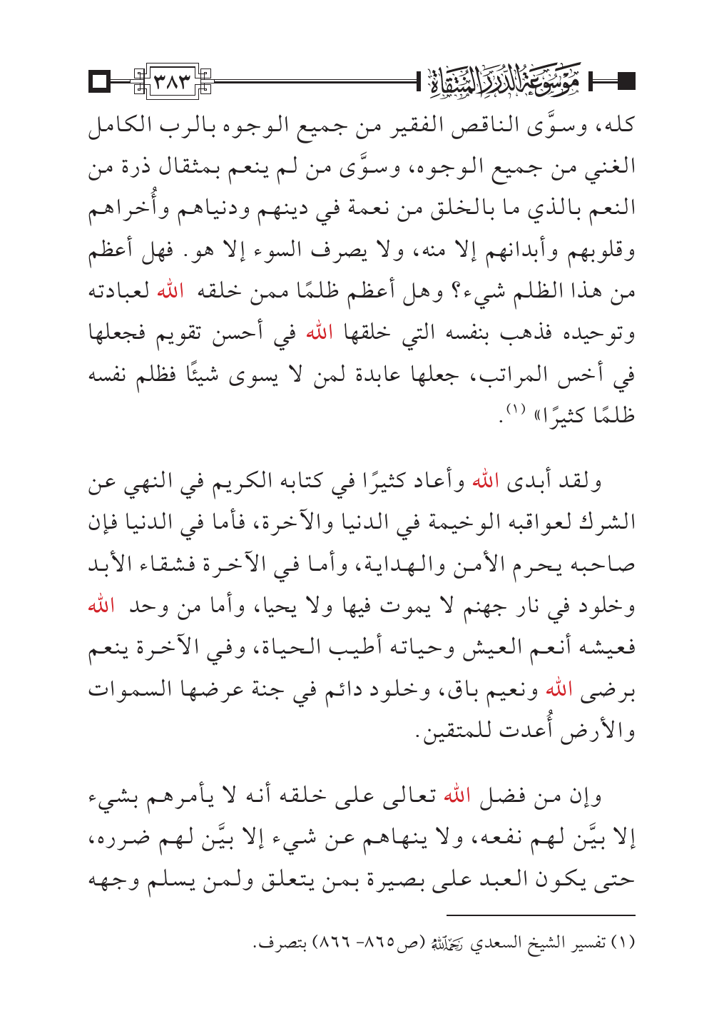 (¬١). تفسير الشيخ السعدي - رحمه الله - (ص ٨٦٥ - ٨٦٦) بتصرف.