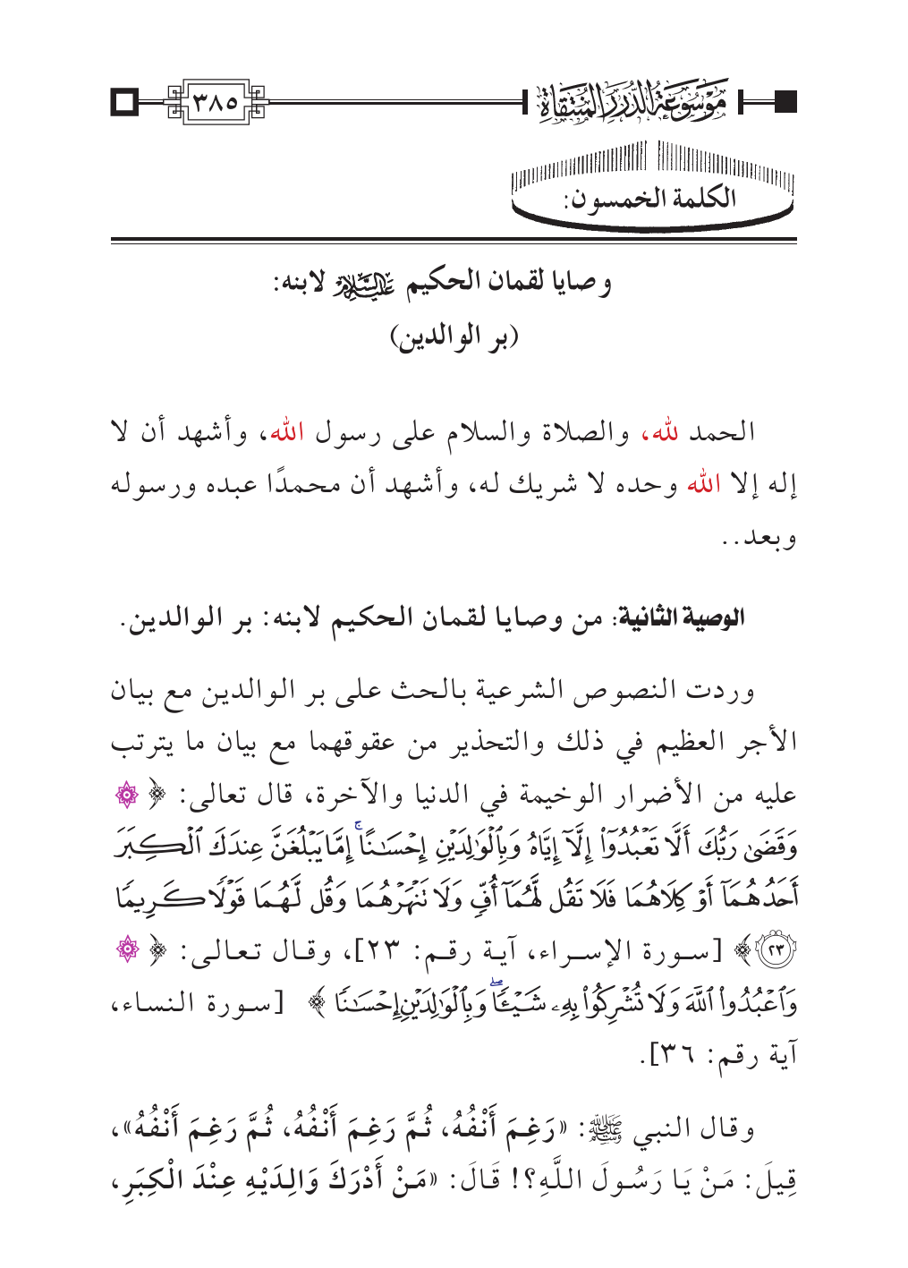 الوصية الثانية: من وصايا لقمان الحكيم لابنه: بر الوالدين.
