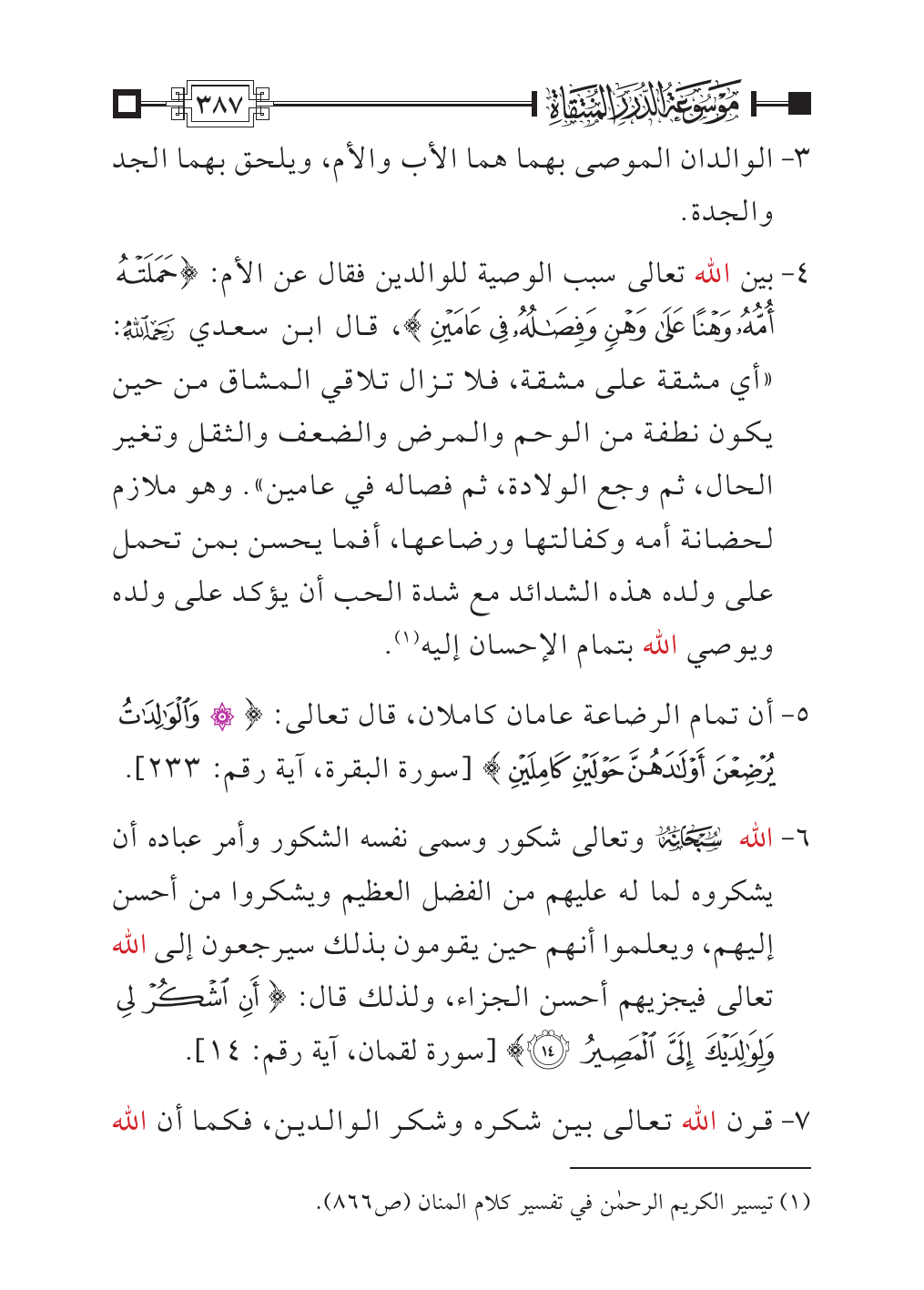 (¬١). تيسير الكريم الرحمن في تفسير كلام المنان (ص ٨٦٦).
