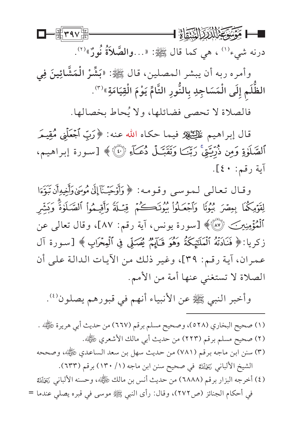 درنه شيء (¬١)، هي كما قال - صلى الله عليه وسلم -: « ... والصَّلَاةُ نُورٌ» (¬٢).