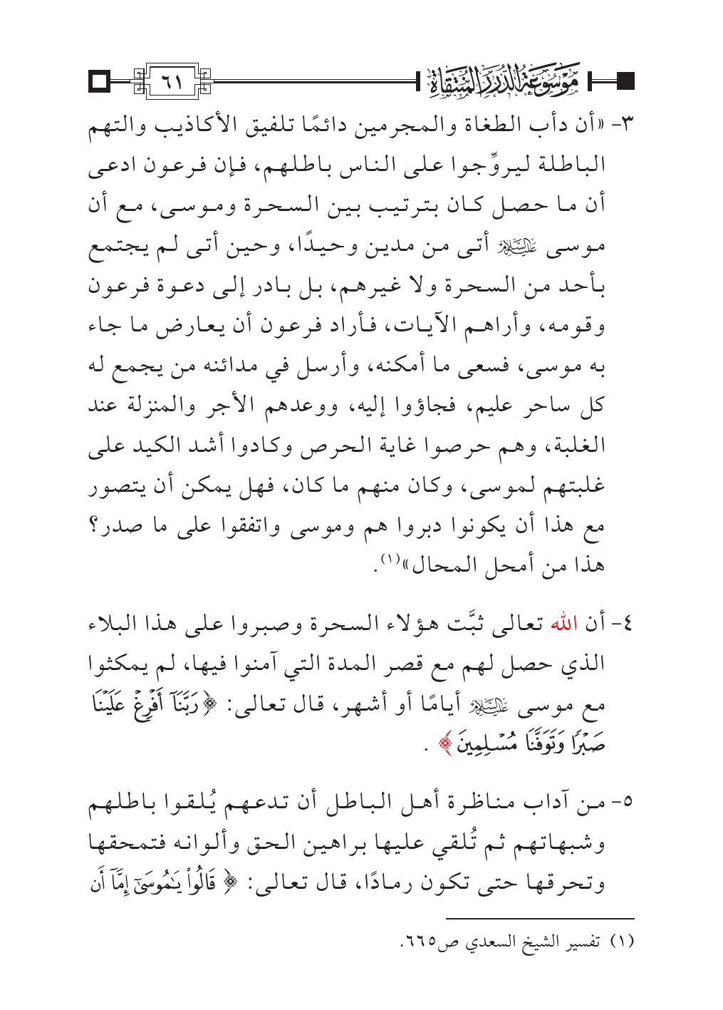 (¬١). تفسير الشيخ السعدي ص ٦٦٥.