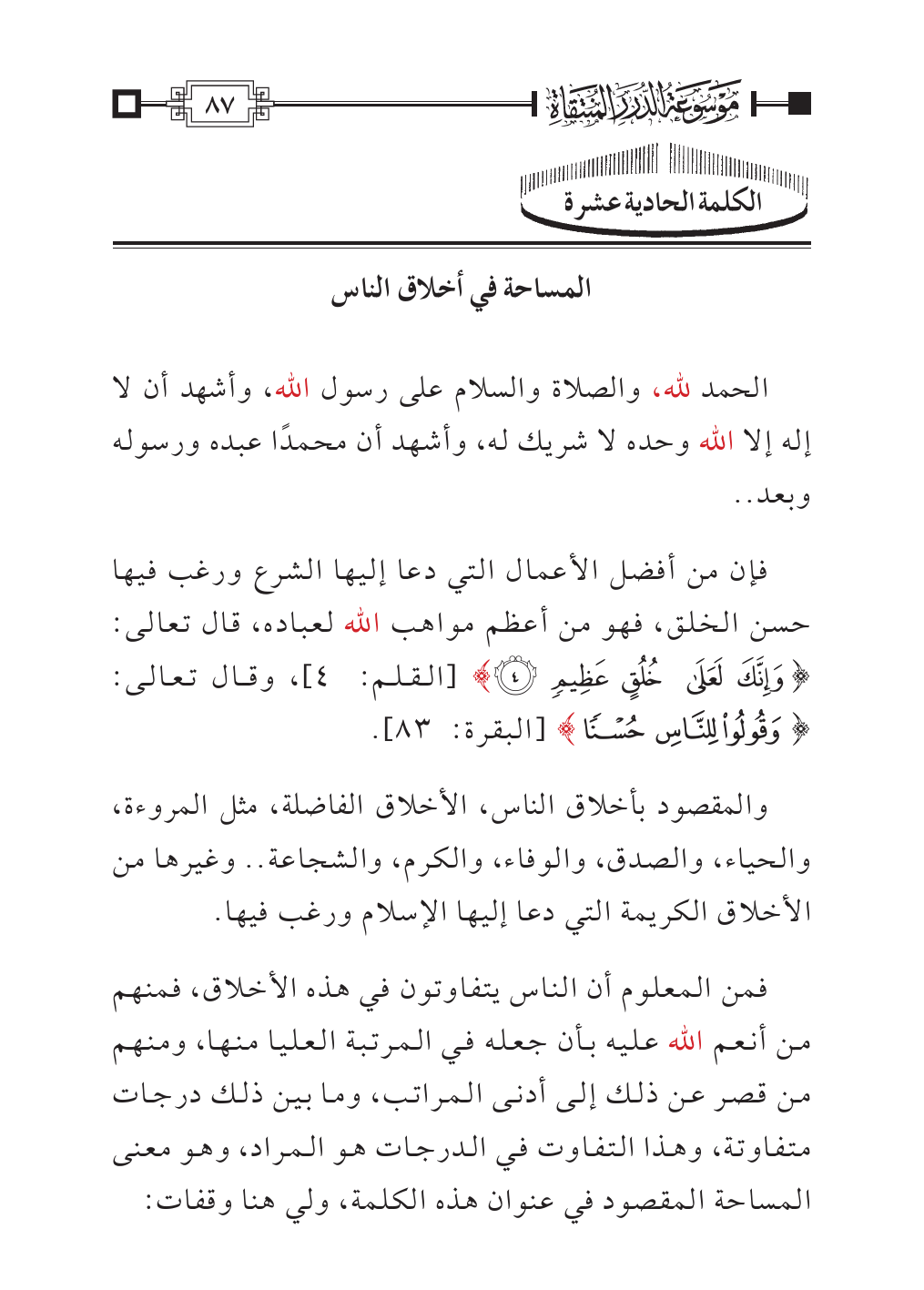 فمن المعلوم أن الناس يتفاوتون في هذه الأخلاق، فمنهم من أنعم الله عليه بأن جعله في المرتبة العليا منها، ومنهم من قصر عن ذلك إلى أدنى المراتب، وما بين ذلك درجات متفاوتة، وهذا التفاوت في الدرجات هو المراد، وهو معنى المساحة المقصود في عنوان هذه الكلمة، ولي هنا وقفات: