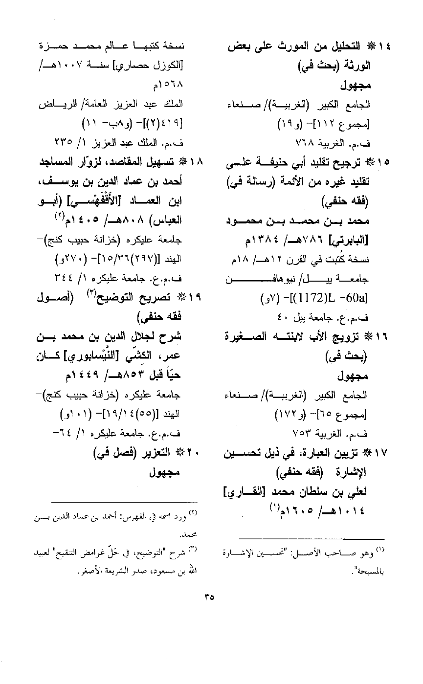 (3) جمع فيه بين "الفصول" لمحمد بن محمود، الأُسروشني، و "الفصول" لجمال الدين بن عماد الدين، العمادي.