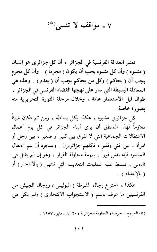 (*) المرجع: جريدة (المقاومة الجزائرية) 20 أيار - مايو - 1958.