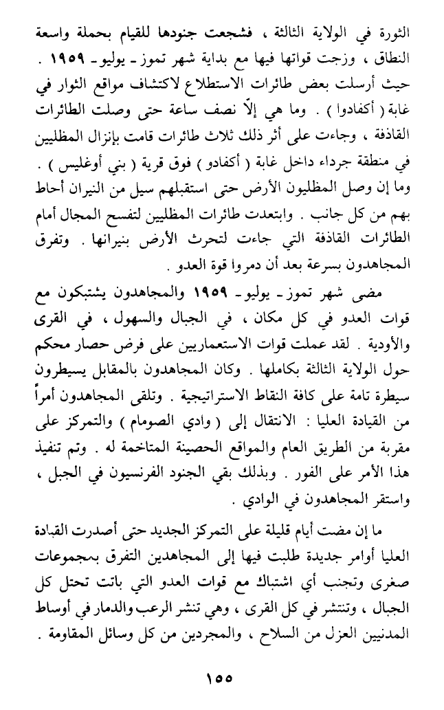 مضى شهر تموز - يوليو - 1959 والمجاهدون يشتبكون مع قوات العدو في كل مكان، في الجبال والسهول، في القرى والأودية. لقد عملت قوات الاستعماريين على فرض حصار محكم حول الولاية الثالثة بكاملها. وكان المجاهدون بالمقابل يسيطرون سيطرة تامة على كافة النقاط الاستراتيجية. وتلقى المجاهدون أمرا من القيادة العليا: الانتقال إلى (وادي الصومام) والتمركز على مقربة من الطريق العام والمواقع الحصينة المتاخمة له. وتم تنفيذ هذا الأمر على الفور. وبذلك بقي الجنود الفرنسيون في الجبل، واستقر المجاهدون في الوادي.