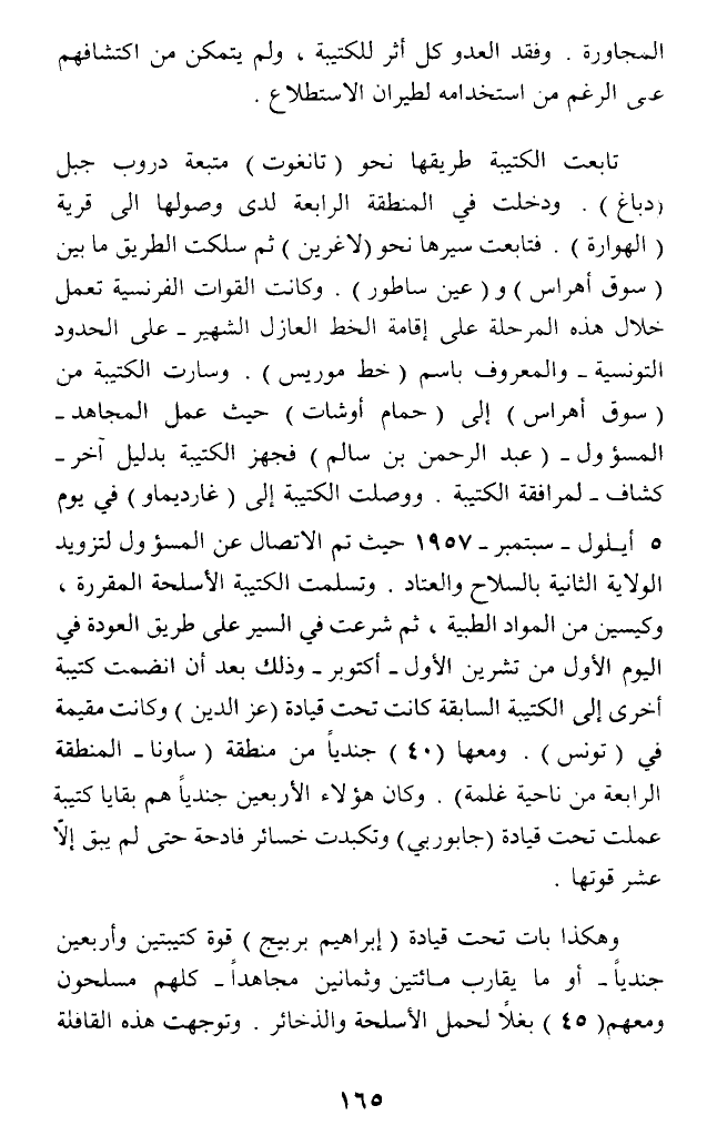 تابعت الكتيبة طريقها نحو (تانغوت) متبعة دروب جبل (دباغ). ودخلت في المنطقة الرابعة لدى وصولها الى قرية (الهوارة). فتابعت سيرها نحو (لاغرين) ثم سلكت الطريق ما بين (سوق أهراس) و (عين ساطور). وكانت القوات الفرنسية تعمل خلال هذه المرحلة على إقامة الحط العازل الشهير - على الحدود التونسية - والمعروف باسم (خط موريس). وسارت الكتيبة من (سوق أهراس) إلى (حمام أوشات) حيث عمل المجاهد - المسؤول - (عبد الرحمن بن سالم) فجهز الكتيبة بدليل آخر - كشاف - لمرافقه الكتيبة. ووصلت الكتيبة إلى (غارديماو) في يوم 5 أيلول - سبتمبر - 1957 حيث تم الاتصال عن المسؤول لتزويد الولاية الثانية بالسلاح والعتاد. وتسلمت الكتيبة الأسلحة المقررة، وكيسين من المواد الطبية، ثم شرعت في السير على طريق العودة في