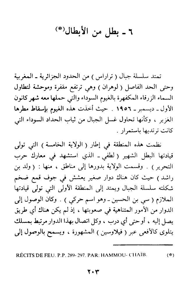 (*) RECITS DE FEU. P.P. 289 - 297. PAR: HAMMOU- C HAIB.