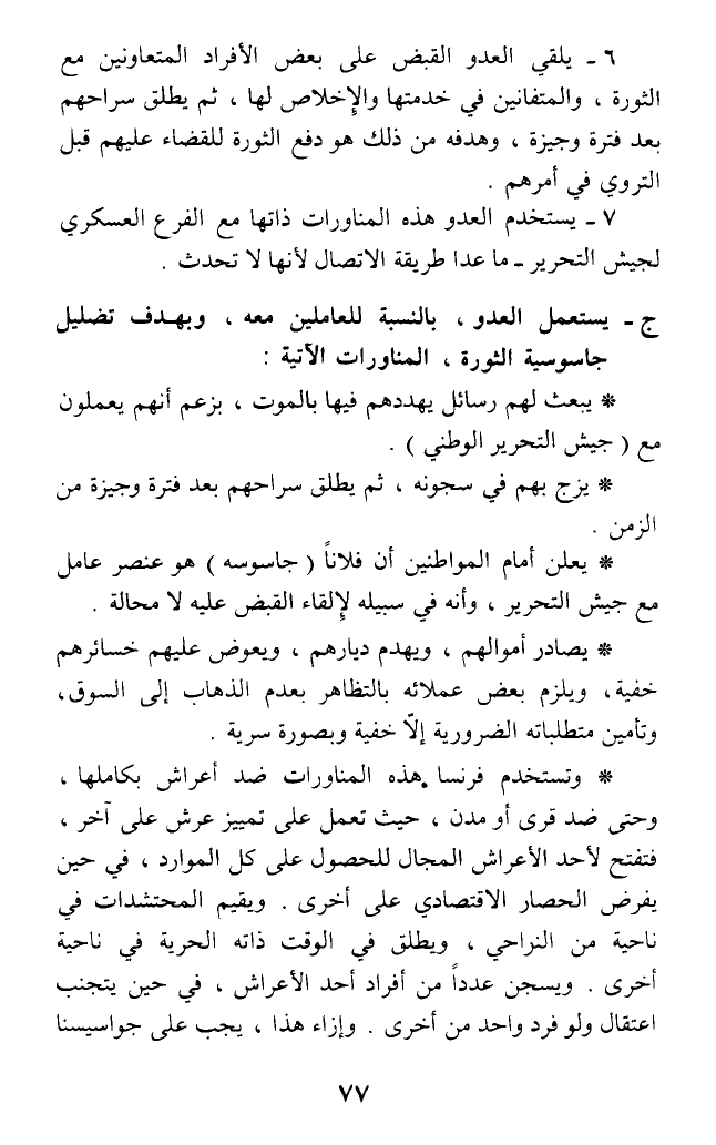 7 - يستخدم العدو هذه المناورات ذاتها مع الفرع العسكري لجيش التحرير - ما عدا طريقة الاتصال لأنها لا تحدث.