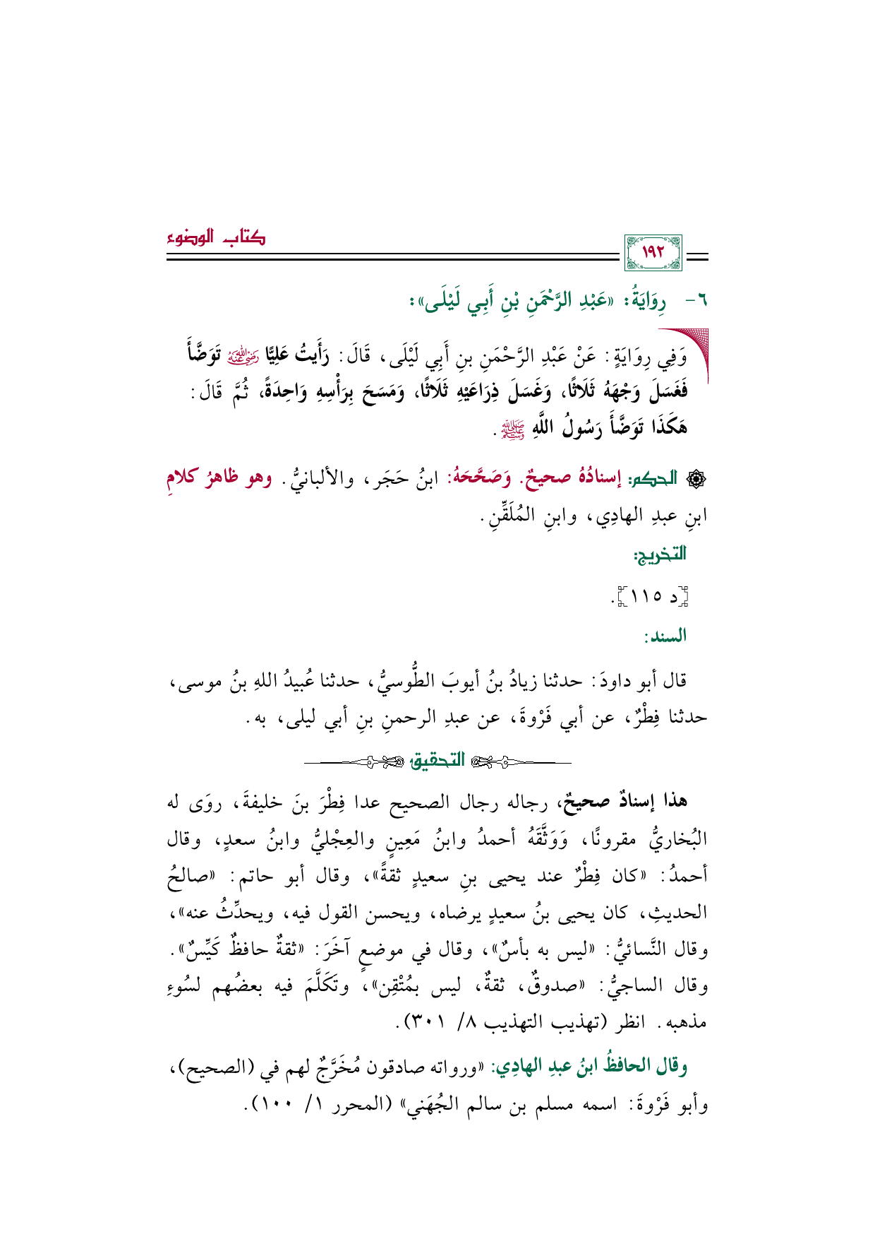 قال (أبو داودَ): حدثنا زيادُ بنُ أيوبَ الطُّوسيُّ، حدثنا عُبيدُ اللهِ بنُ موسى، حدثنا فِطْرٌ، عن أبي فَرْوةَ، عن عبدِ الرحمنِ بنِ أبي ليلى، به.
