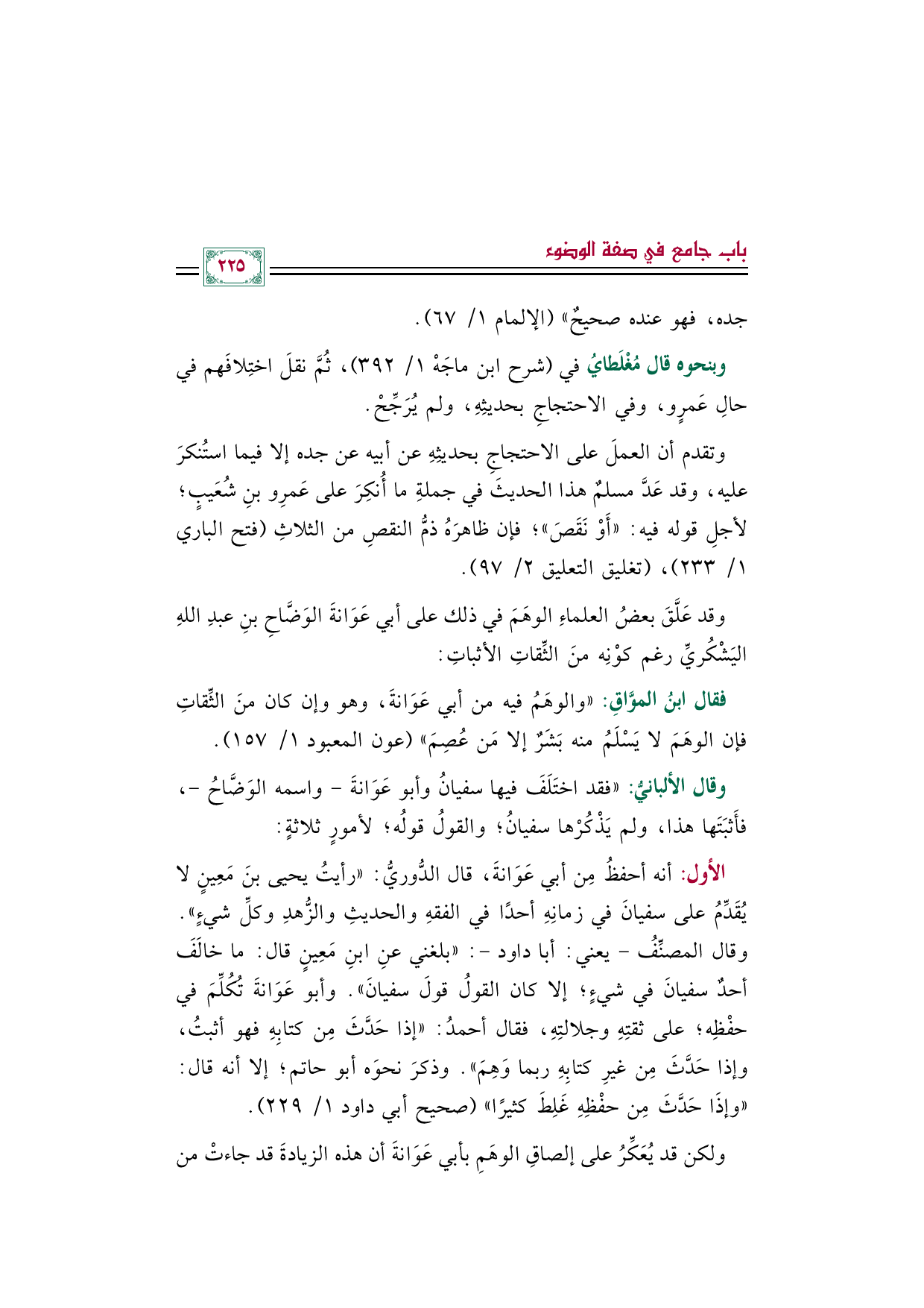 فقال ابنُ الموَّاقِ: "والوهَمُ فيه من أبي عَوَانةَ، وهو وإن كان منَ الثِّقاتِ فإن الوهَمَ لا يَسْلَمُ منه بَشَرٌ إلا مَن عُصِمَ" (عون المعبود ١/ ١٥٧).